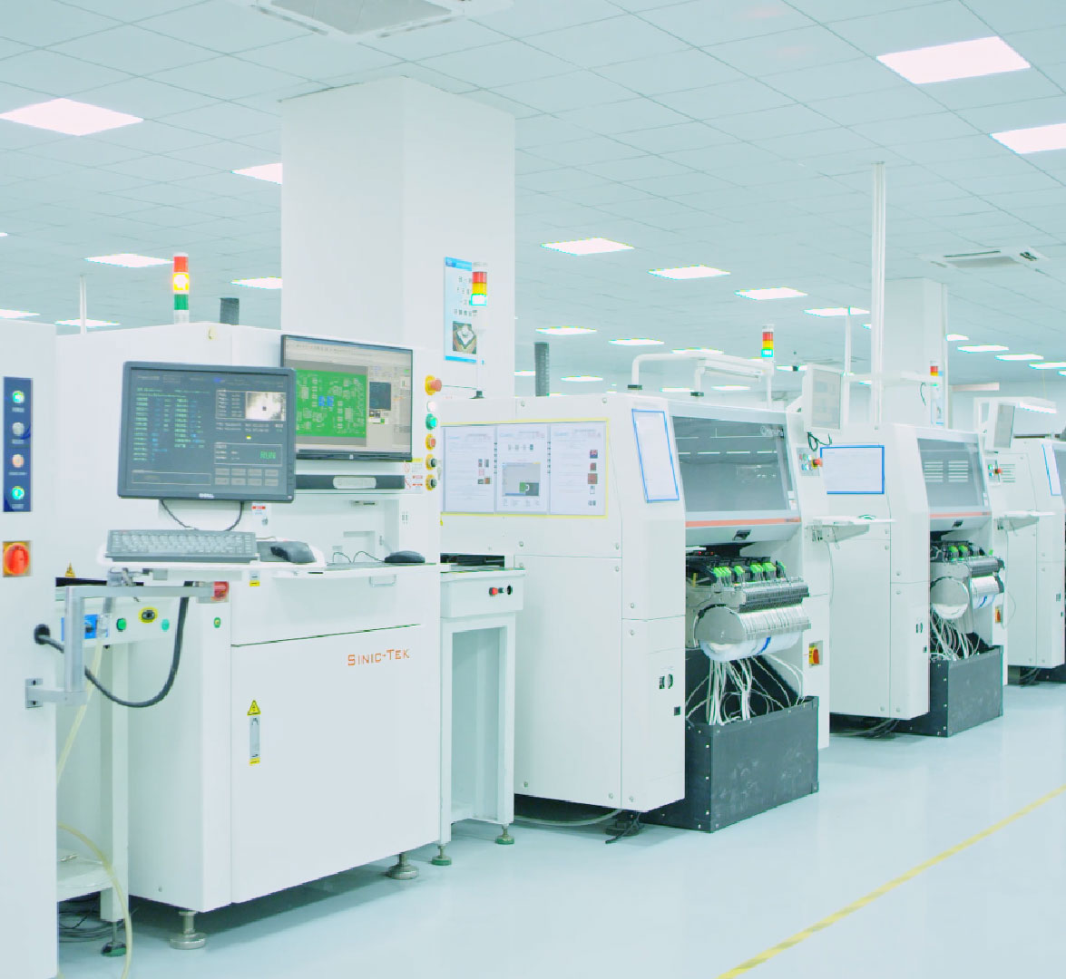 公司配備7條自動貼片線,2條DIP插件波峰焊線,2條手工后焊線,2條測試線,1條自動三防漆噴涂線,常溫老化房,600㎡周轉(zhuǎn)倉庫及400㎡恒溫恒濕電子倉。